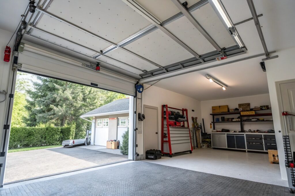 Sliding doors track along your garage wall to the side. They work, but you lose all that wall space, and they’re really only practical for garages with specific layouts. Most Sydney homes don’t have the side clearance to make them work.